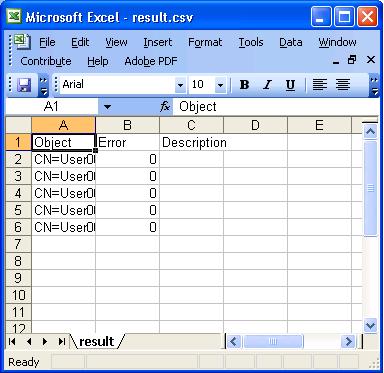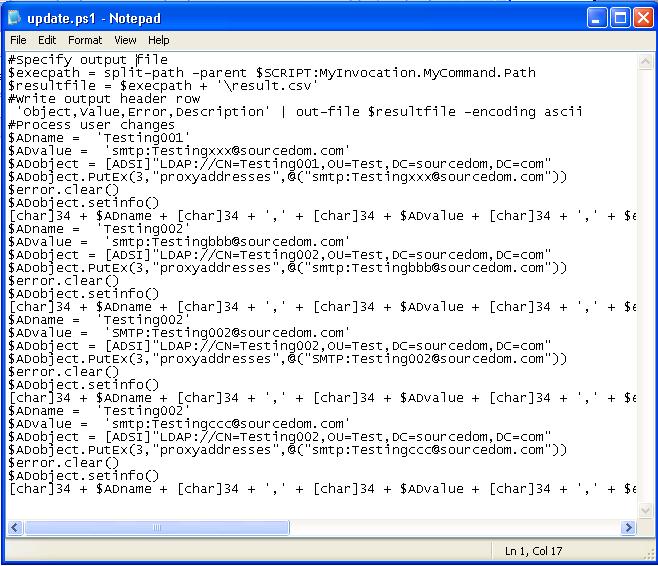 Once update.ps1 is run, there will be no output on the command line if the script executes without error. Errors will be outputted in red text. The script will output the csv file into its execution directory called Result.csv.