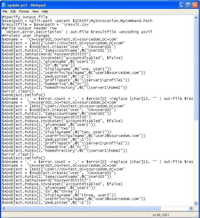 Once update.ps1 is run, there will be no output on the command line if the script executes without error. Errors will be outputted in red text. The script will output the csv file into its execution directory called Result.csv.