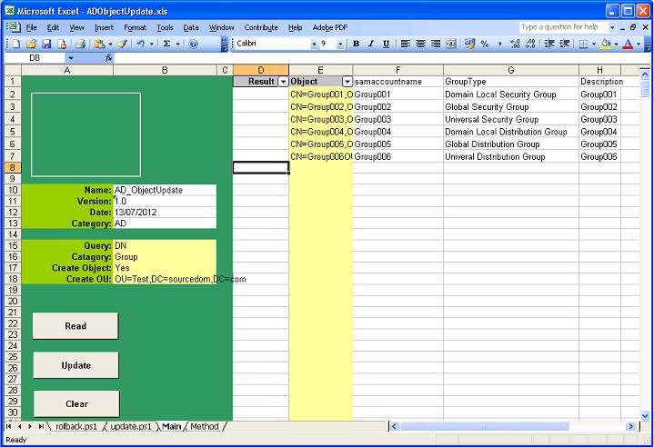 This spreadsheet is for the bulk changing or creation of Active Directory objects. The Objects will not be accessed directly, the spreadsheet will generate powershell scripts that can be executed by administrators.