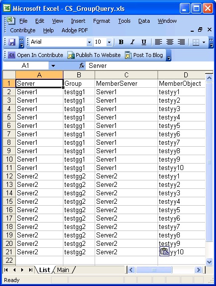 Once all the objects membership has been read then the membership will also be outputted in a list format in the list sheet. Each row will have a object name and membership name. All the membership will be listed row by row until every membership for every object has been listed.